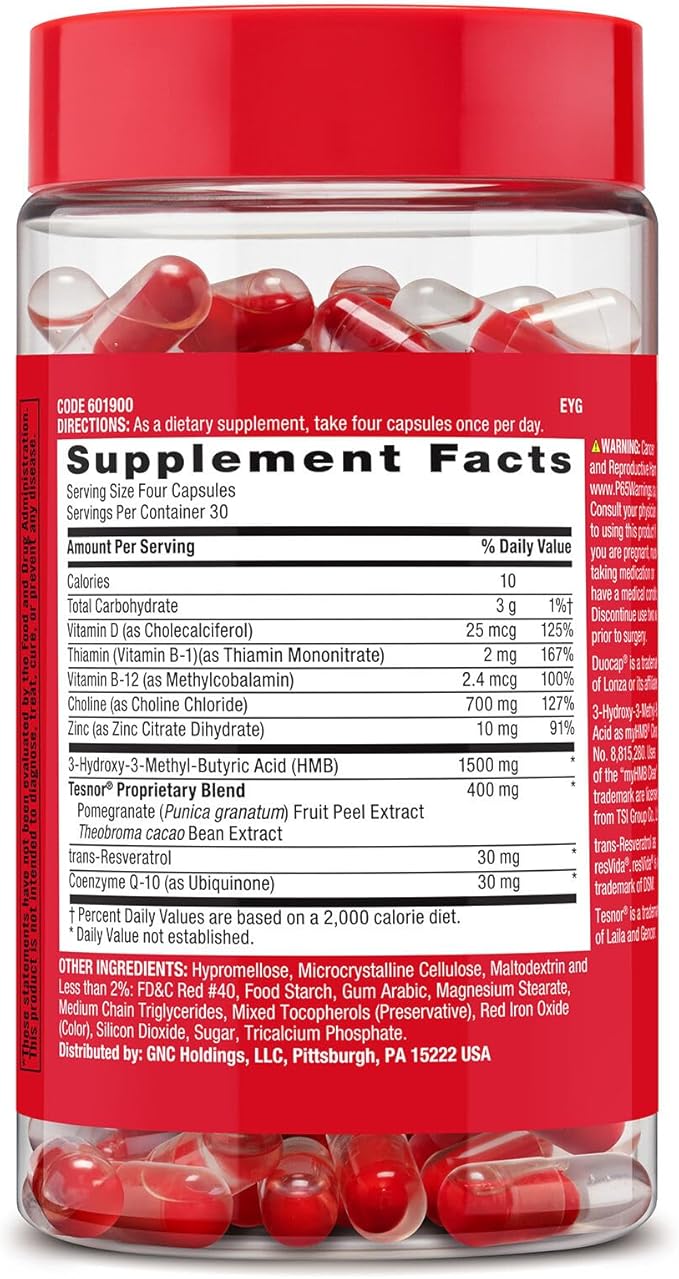 - BOOST TESTOSTERONE LEVELS WITH GNC MEGA MEN ULTRA TESTOSTERONE: Starting at 30 years old, testosterone levels begin to decline by 2–3% in men. If that sounds like a bummer, it is—declining testosterone can negatively impact sexual function, mood, strength, and muscle mass. Increase free and total testosterone with the first-ever clinically studied test booster inside muscle-enhancing liquid HMB.