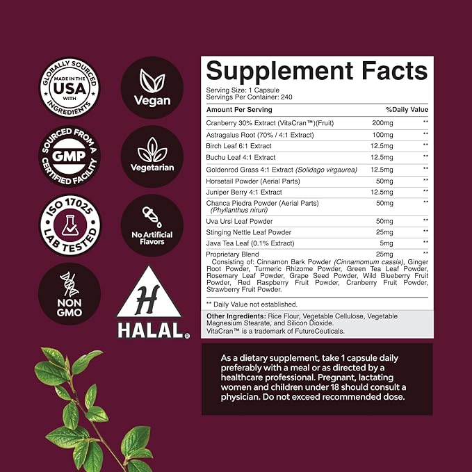 - Kidney Health Supplement - We have sourced herbal-based ingredients such as wild blueberry powder organic red raspberry leaf and java tea for cranberry pills for urinary tract and bladder health