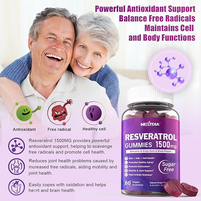 - [POWERFUL ANTIOXIDANT SUPPORT]: Resveratrol is a naturally powerful antioxidant compound that helps neutralize free radicals, optimization oxidation reaction,optimization free radical side effect and keeping our cells healthy. Our trans-resveratrol is more active and bioavailable than regular resveratrol help for better absorption. Resveratrol Gummies support antioxidant, mobility and joint health. You might need a little extra help on your antioxidant journey, and resveratrol is the way to go!