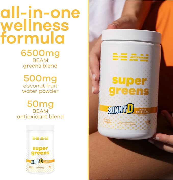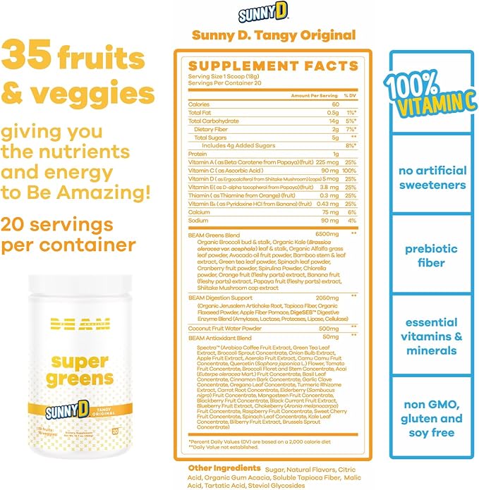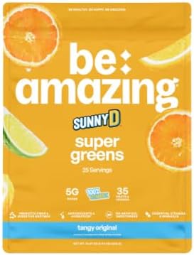 Be Amazing Super Greens Powder with Prebiotics, Digestive Enzymes & Antioxidants | Energy Supplements, 17 Fruits & 8 Veggies | Gluten-Free Juice & Smoothie Mix | Sunny D, 20 Servings, 360 g