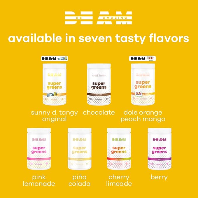- AVAILABLE IN 7 FLAVORS - Your daily dose of greens should not only offer amazing benefits; it should taste amazing too. Choose among Be Amazing's powdered drink mix flavors that suits your taste: Apple Cider, Citrus Matcha, Chocolate, Berry, Pink Lemonade, Cherry Limeade, or Sunny D. Improve your digestion and body detox, one serving at a time.