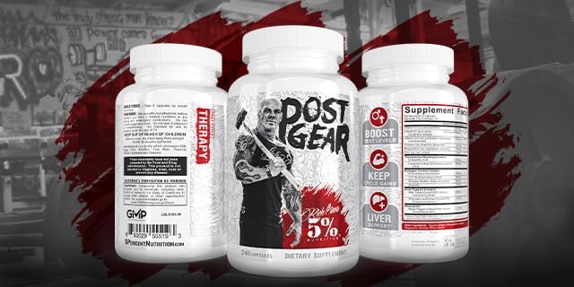 5% Nutrition Rich Piana Post Gear PCT Support Booster | Estrogen Blocker, Aromatase Inhibitor | Post Cycle Therapy Supplement | DAA, DIM, Longjack, Stinging Nettle, Milk Thistle, 240 Capsules