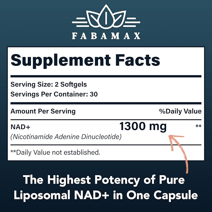 - 20X Superior Absorption - Each Liposomal NAD Capsule is enhanced with Advanced Liposome Technology for enhanced NAD+ absorption. A strong alternative to Nicotinamide Riboside or NADH supplements, Fabamax Liposomal NAD+ Supplements are easy to swallow and small enough to hold in your pocket, handbag, or car.