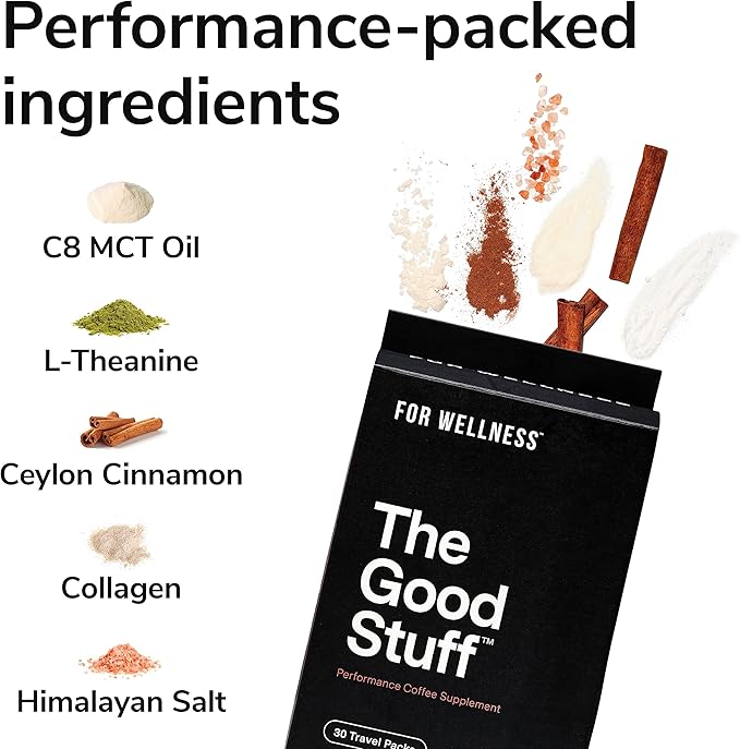 For Wellness The Good Stuff™ Performance Blend (30 Travel Packets), Non-Dairy Coffee Supplement with Collagen, L-Theanine and Himalayan Pink Salt – Improves Focus and Increases Energy