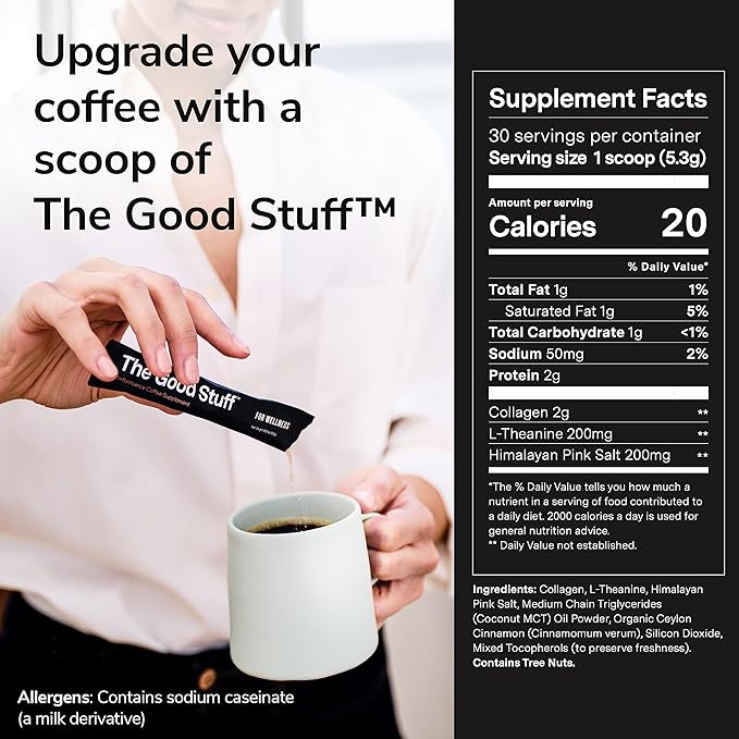 - SUPERCHARGE YOUR MORNING BREW – The Good Stuff is a performance coffee supplement that will supercharge the natural benefits of your morning brew, promote focus, and reduce the caffeine jitters.