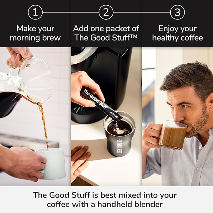 - SUPERCHARGE YOUR MORNING BREW – The Good Stuff is a performance coffee supplement that will supercharge the natural benefits of your morning brew, promote focus, and reduce the caffeine jitters.