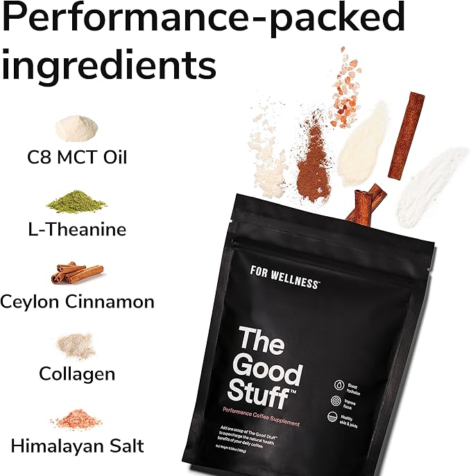 For Wellness The Good Stuff Performance Coffee Supplement- Non-Dairy Coffee Creamer Powder w/Collagen, MCT, L-Theanine & Cinnamon - Healthy Coffee Add-in for Energy & Focus