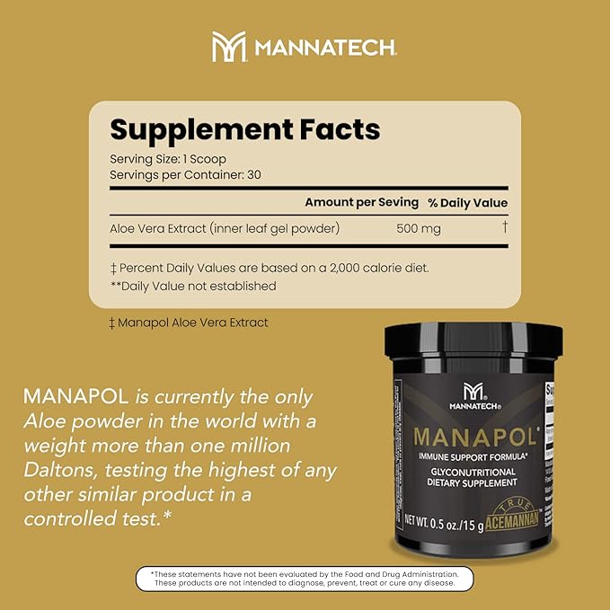 Mannatech Manapol Immune Support Formula for Immunity Support & Immunity Boost. Aloe Vera Powder Prebiotic for Digestive Health. Aloe Vera Drink for Immune Support Supplement 0.5oz/15g