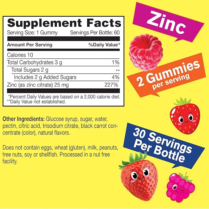 - PERFECT SERVING SIZE: This pot contains 60 servings at 1 gummy per serving, amounting to 25mg a day, giving your kids the zinc they need for 2 months' supply. Our gummies are doctor recommended.