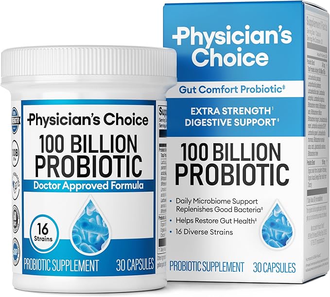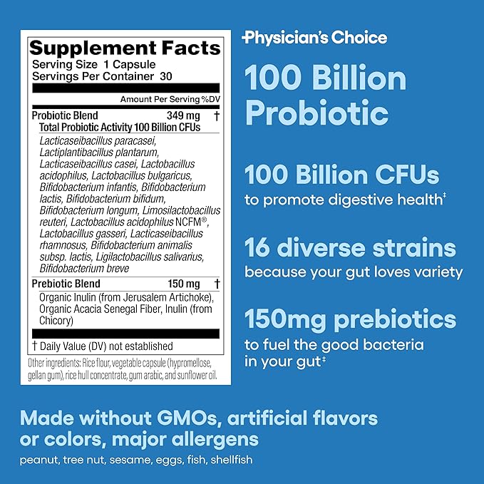 Physician's CHOICE 100 Billion Advanced Probiotic - 16 Strains + Organic Prebiotics - Digestive & Gut Health - Supports Occasional Constipation, Diarrhea, Gas & Bloating - Probiotics for Women & Men