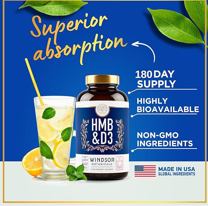 HMB and Vitamin D3 Supplement - Muscle Growth, Strength, Performance and Recovery Support - B-Hydroxy B-Methylbutyrate, D3 Plus Calcium, 1,000 MG HMB Supplements - 180 Days, 360 HMB Capsules