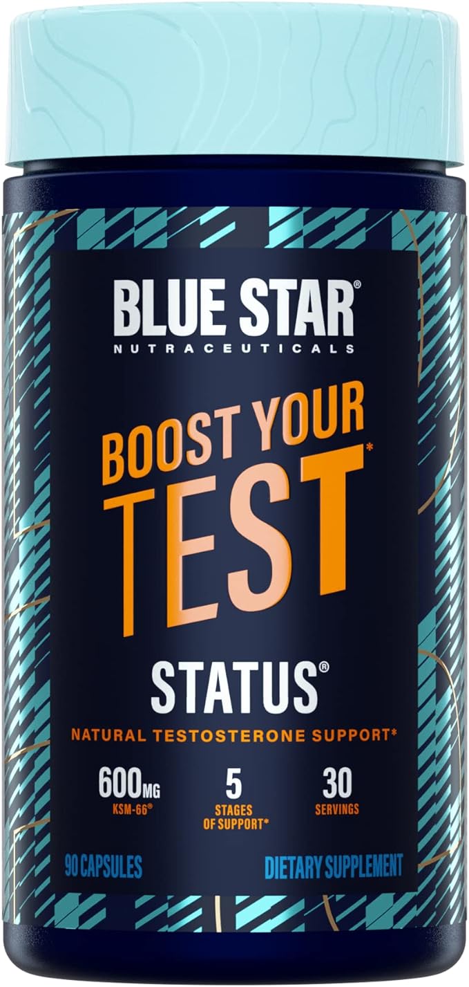 Blue Star Nutraceuticals Status - Testosterone Booster for Men - w/KSM 66 Ashwagandha - Invigorate Stamina, Muscle Growth & Energy | Natural Test Booster Support - 90 Veggie Capsules