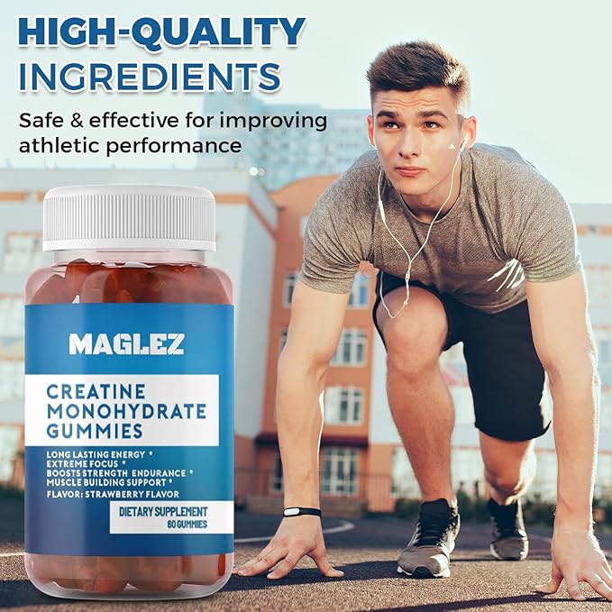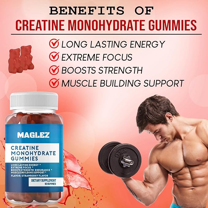 - High Potency Pure Creatine – Each gummy provide 2g of premium creatine monohydrate to support muscle strength, energy and endurance. It is commonly used as a supplement to improve sports performance and aids muscle recovery.