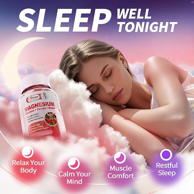 - Essential Elements: Magnesium participates in more than 300 enzymatic reactions that promote heart and nerve function. Low levels of magnesium in your body will cause multiple health issues. The level of magnesium or calcium for calm mood and sleep. Moreover, the synergistic combination of magnesium, calcium and potassium in these gummies can reduce daytime tiredness, improve concentration and reduce the negative effects of sleep deprivation by relaxing your body.