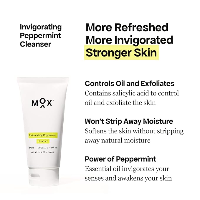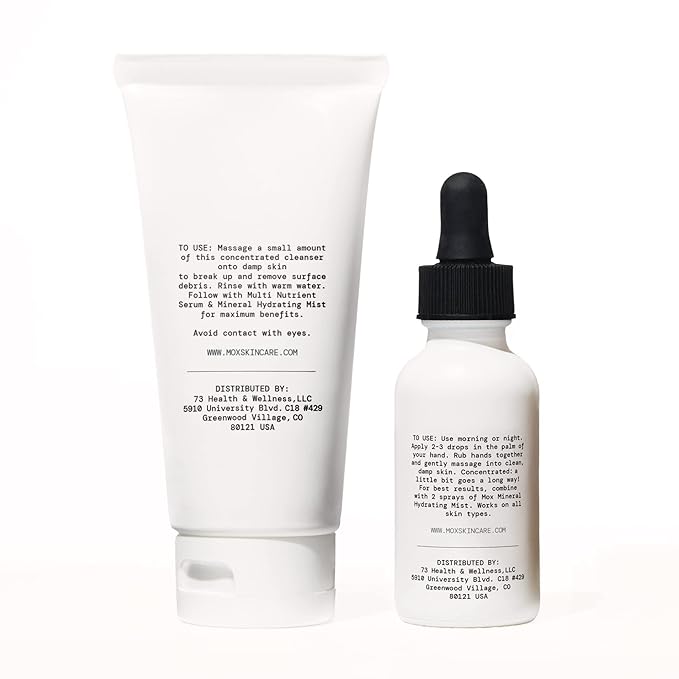Mox Skincare Starter Set (2 pc set) | Daily Face Care Set Includes Mint Exfoliating Face Cleanser + Nutrient Hydrating Serum | Anti-Aging for Fine Lines & Wrinkles