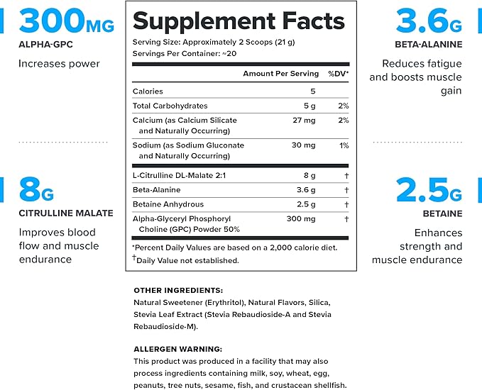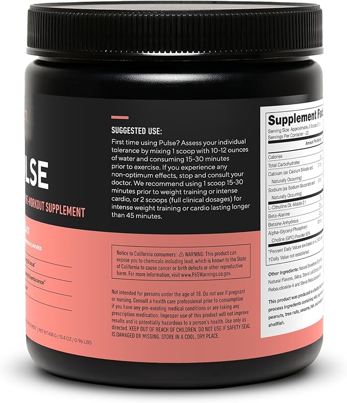 - Product Benefits : LEGION Pulse Pre Workout Supplement - All Natural Nitric Oxide Preworkout Drink to Boost Energy, Creatine Free, Naturally Sweetened, Beta Alanine, Citrulline, Alpha GPC (Caffeine Free Arctic Blast) LEGION Pulse Pre Workout Supplement - All Natural Nitric Oxide Preworkout Drink to Boost Energy, Creatine Free, Naturally Sweetened, Beta Alanine, Citrulline, Alpha GPC (… See more