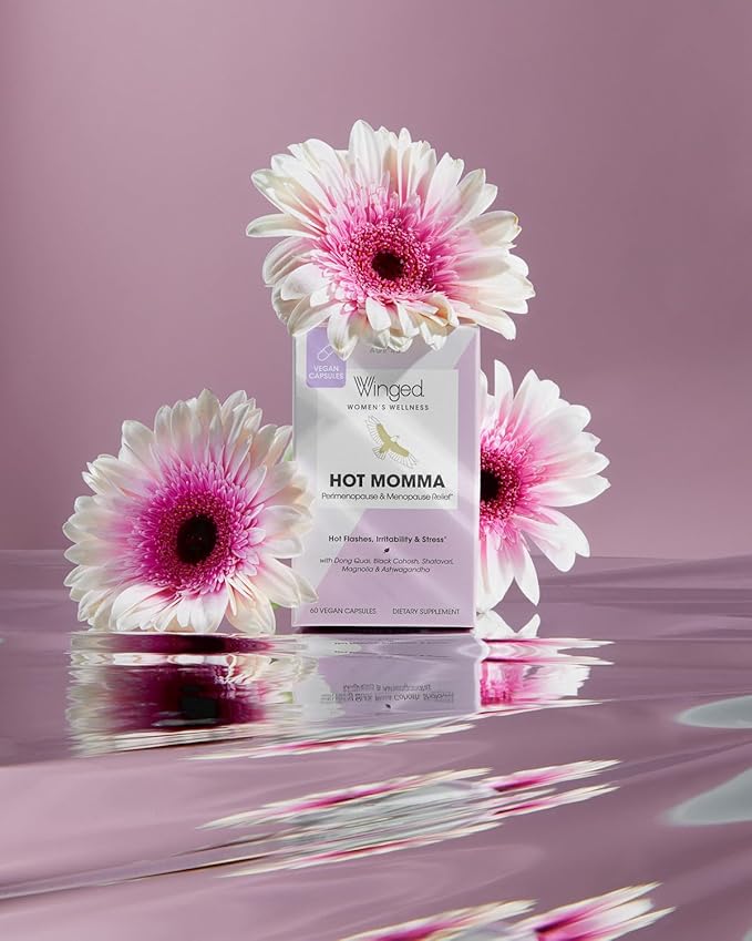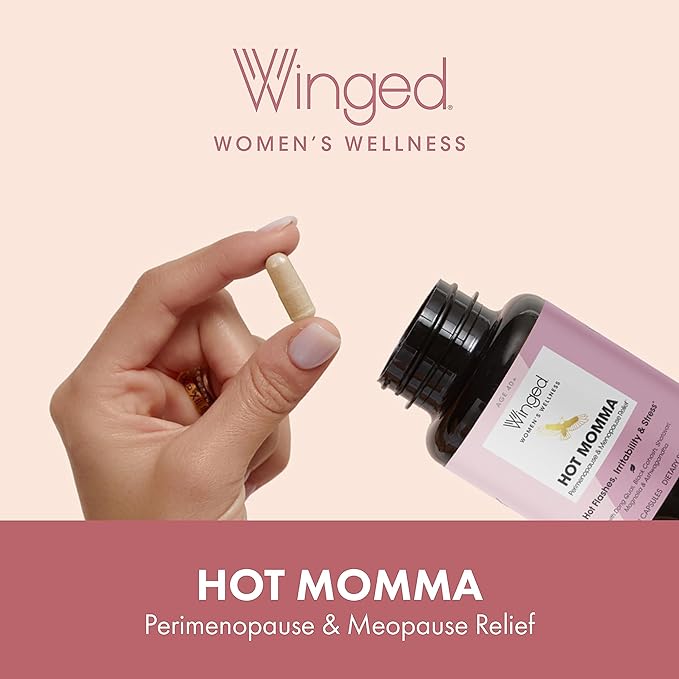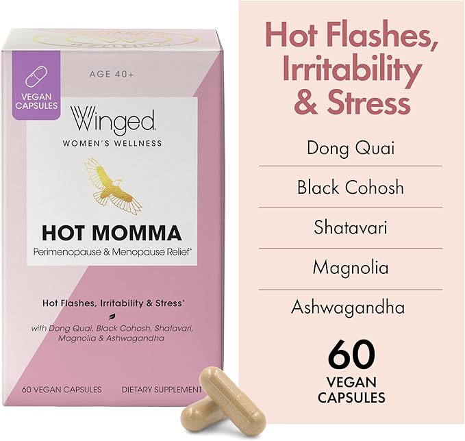 Winged Wellness Hot Momma | Menopause Capsules for Women | Hormone Balance, Hot Flashes, Night Sweats, Sleep, Mood & Bone Health | Chaste Tree, Dong Quai, Black Cohosh, Vitamins D & K-2 | 60ct