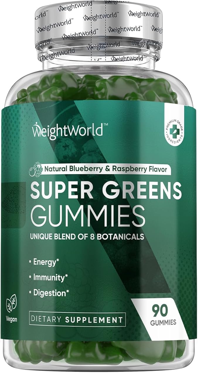 - POWER-PACKED SUPERGREEN GUMMIES - WeightWorld's Super Greens Gummies deliver a powerful blend of essential greens. Each bottle contains 90 gummies, providing a 45-day supply. Packed with vital vitamins, including B1, B6, B12, Niacin, Folate, and Pantothenic Acid, these gummies support overall well-being. Enriched with Sodium, all the nutrients actively & naturally help your body feel fit & light.