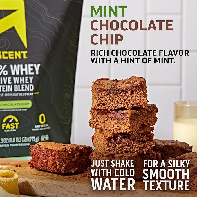 Ascent 100% Whey Protein Powder - Post Workout Whey Protein Isolate, Zero Artificial Flavors & Sweeteners, Gluten Free, 5.5g BCAA, 2.6g Leucine, Essential Amino Acids, Mint Chip 1.7 lb
