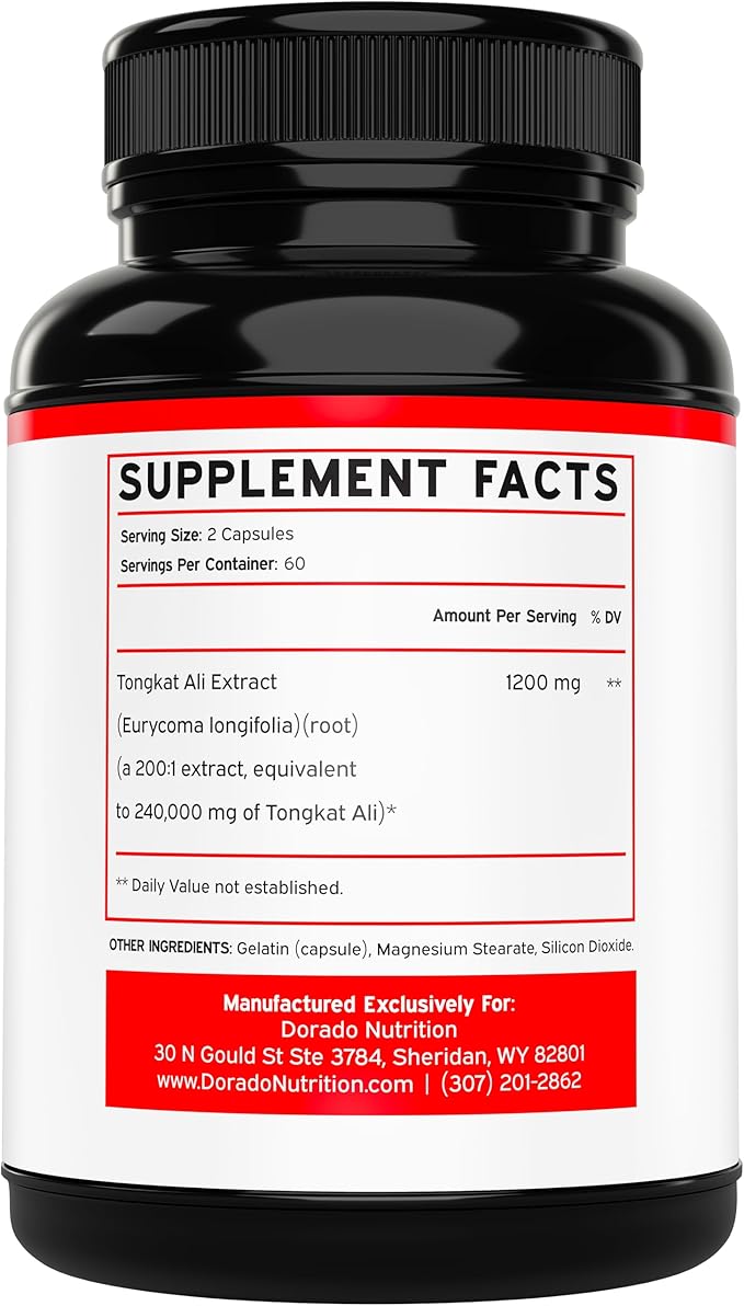 - Manufactured in the USA from Globally Sourced Ingredients - Dorado Nutrition is proudly a 100% American owned company creating jobs & better futures for all our employees & stakeholders. All of our supplements are manufactured in the USA! Our Tongkat Ali Complex capsules are made in the USA and safety tested for heavy metal and microbes in a state of the art facility.