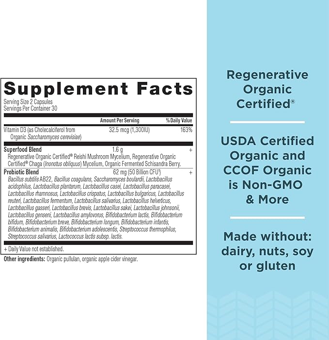 - This first ever Regenerative Organic Certified Women’s Extra Strength Probiotics brings you 50 billion CFUs1 probiotics probiotics with female-specific superfoods grown in nutrient-dense soil.
