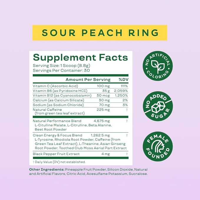 - GOOD FOR YOU INGREDIENTS: Made with no artificial coloring and no added sugar, and formulated with beta-alanine, ginseng, electrolytes, amino acids, green tea leaf extract and more to help boost endurance and sharpen focus.
