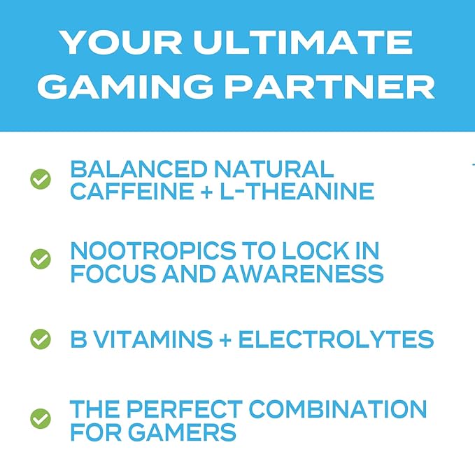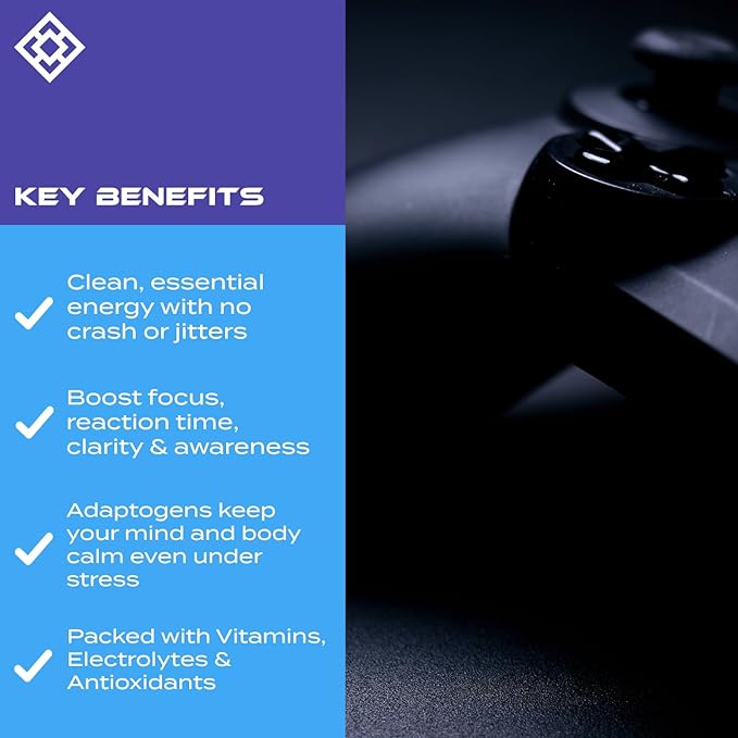 - CLEAN, ESSENTIAL ENERGY: Blended with 160mg of Natural Caffeine, 5 Essential B Vitamins, Electrolytes, Antioxidants, Powerful Nootropics, and Potent Adaptogens, our Pre-Game Energy is perfectly designed for gamers. From casuals to professionals.