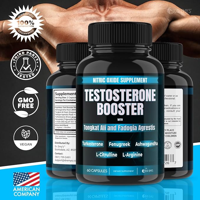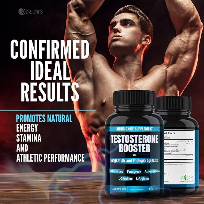 Dr. Emy's (2 Pack Testosterone Booster-Tongkat Ali Fadogia Agrestis Nitric Oxide Ashwagandha Supplement for Men with L Arginine Citrulline Fenugreek - Turkesterone Pre Workout Pump (120 Capsules)