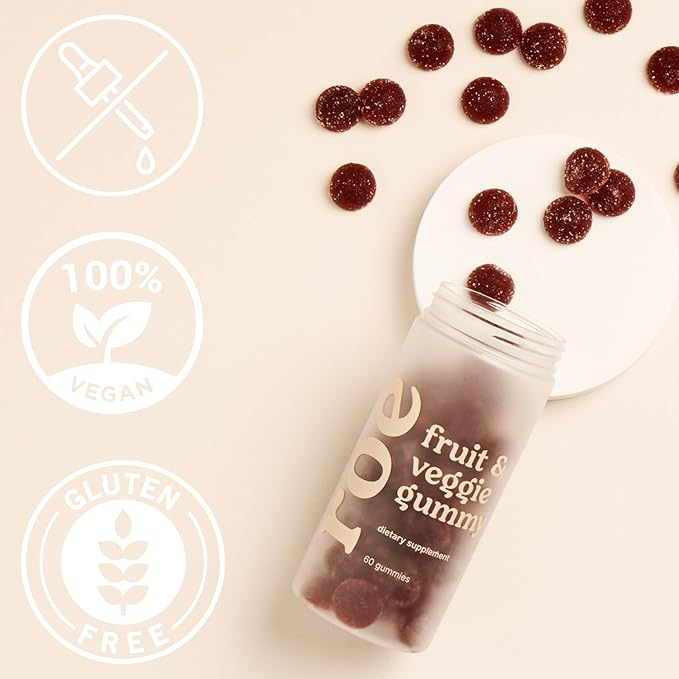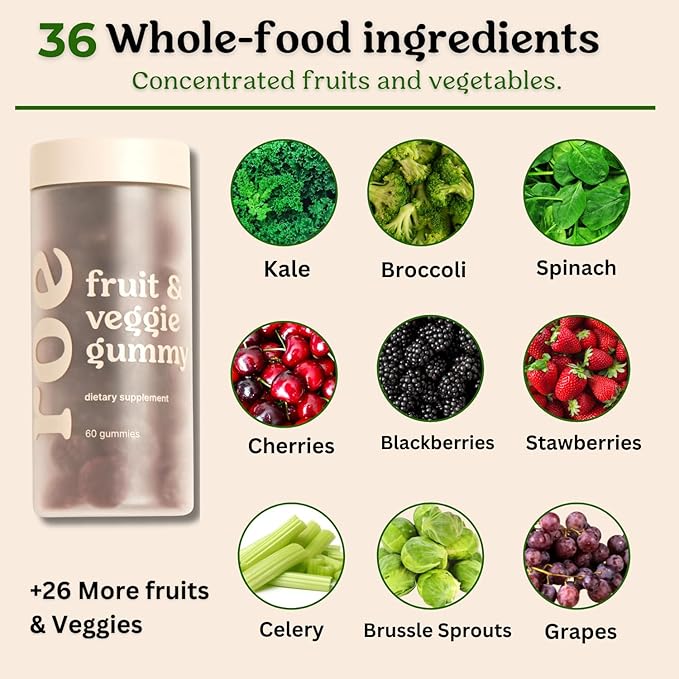 Roe Wellness- Kids Immune Support Vitamin Gummies Fruits & Veggie Probiotics | Clean Ingredients, No Artificial Colors or Flavors | Concentrated 18 Vegetable & 8 Fruit (60 Count)