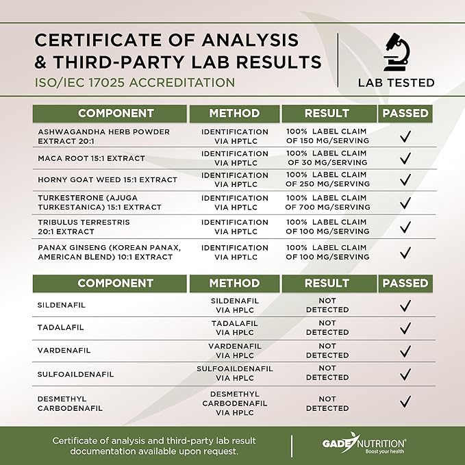 - SAFE STANDARD QUALITY: Our products are manufactured in the USA with all-natural, fast-dissolving veggie capsules. Made in an FDA-registered laboratory that is GMP certified. We hold ourselves to high standards of natural purity, Potency, and Third Party Tested. Trust Gade Nutrition for a high-quality supplement. Our pills are made with non-GMO, gluten-free, sugar-free ingredients, no stimulants, no binders, no fillers, no allergens, and no chemicals