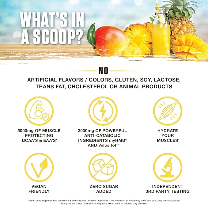 Ambrosia Hydroglyph Intraworkout Formula w/BCAA + EAA + Electrolytes Hydration Powder to Protect Lean Muscle, 0g Sugar Fasting Hydration Drink Mix, Made w/Coconut Water (Pineapple Mango)