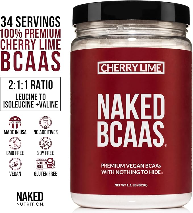 Cherry Lime Naked BCAAs Amino Acids Powder, 100% Pure 2:1:1 Formula, Vegan Branched Chain Amino Acids, Instantized All Natural BCAA Powder Supplement - 501 Grams, 34 Servings