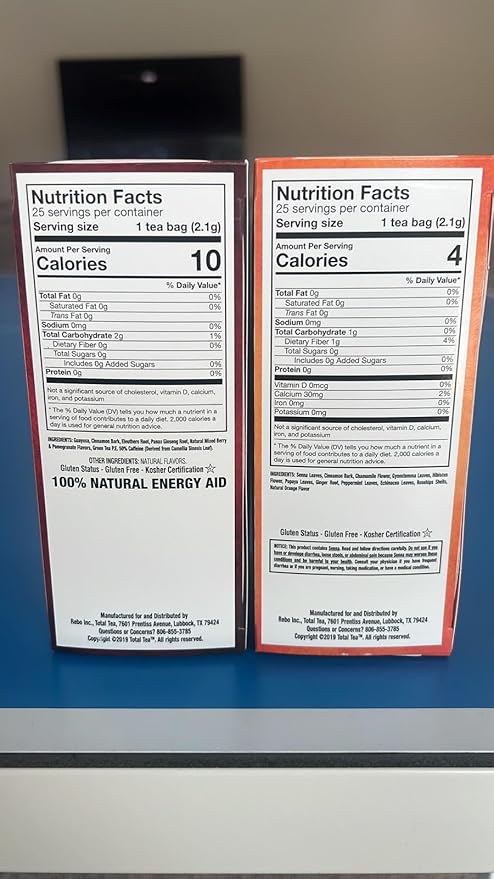 - Made in USA - GMP-compliant facilities, herbal slimming tea is Kosher-certified, Gluten Free, Caffeine Free and Vegan-Friendly. Our organic chamomile tea bags are available in 25 tea bags or 12 K-Cup Pods. For better results, we recommend taking Energy Tea in the morning and Detox Tea in the evening.