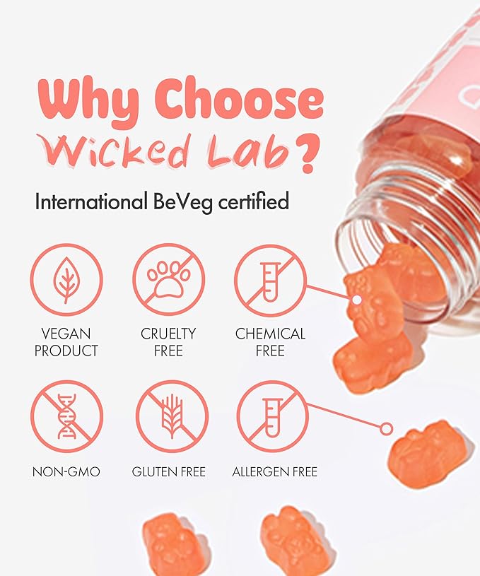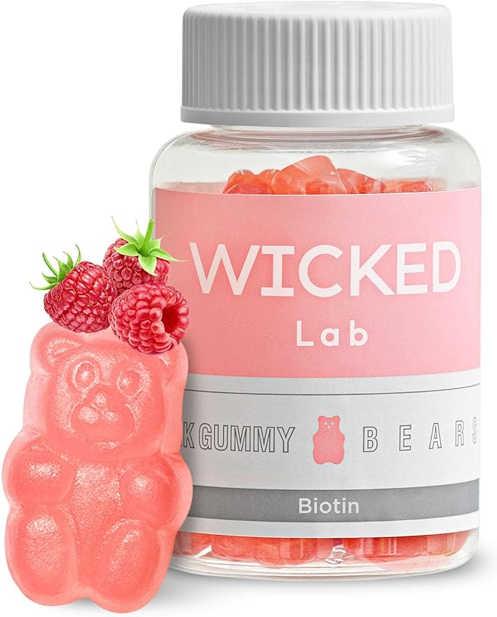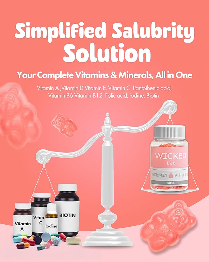WICKEDLAB Pink Gummy Bears - Biotin Gummies for Hair Skin and Nails Vitamins | Kids & Adult Multivitamin Gummy Bear Biotin Supplement | Adult & Kids Multivitamin Gummies w/Biotin (1 month supply)