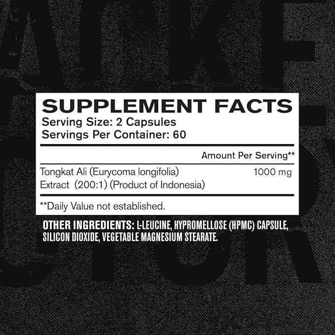 - 1000 MG of 200:1 Extract Tongkat Ali per Serving: We take immense pride in delivering a Tongkat Ali supplement that stands above the rest in terms of potency and purity. Our 1000 mg per serving of 200:1 extract Tongkat Ali ensures you experience the full results of this remarkable herb, providing maximum benefits in every dose.