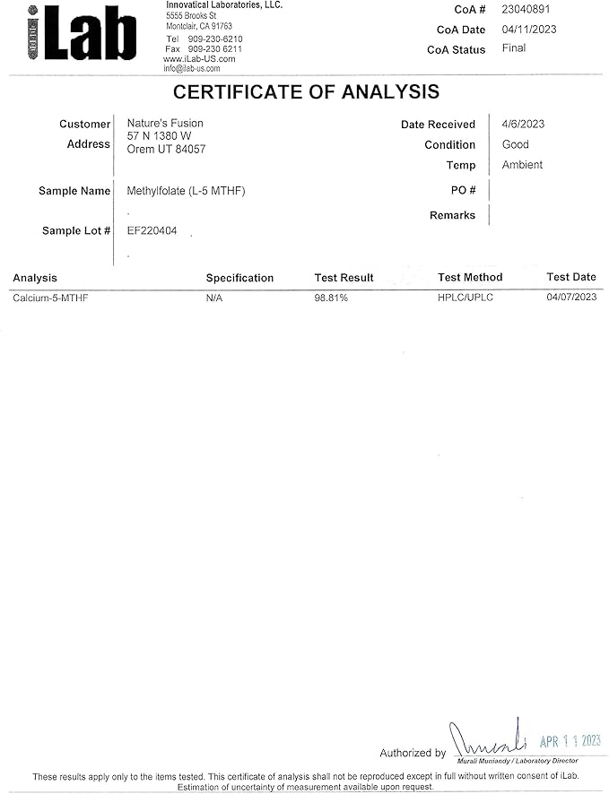 - BIOAVAILABLE AND PURE: Our 5-MTHF supplement features the bioactive form of folic acid, known as 5-methyltetrahydrofolate (5-MTHF). This highly bioavailable and pure form of methylated folate is readily utilized by the body, ensuring efficient absorption and utilization.