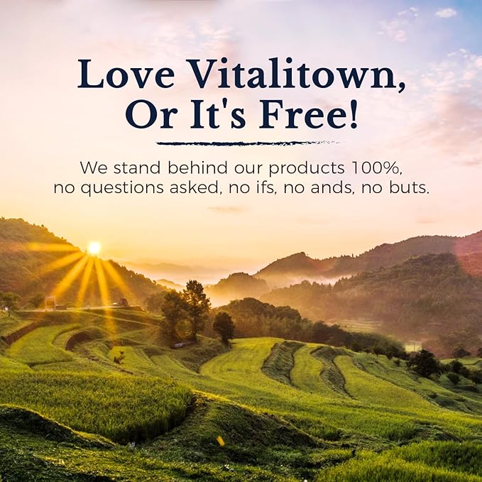 - Made in the USA: Vitalitown products are manufactured and packaged in the USA in a GMP certified facility. They are tested by the third party for purity and potency to ensure that each and every bottle of Vitalitown products represents the highest standards.