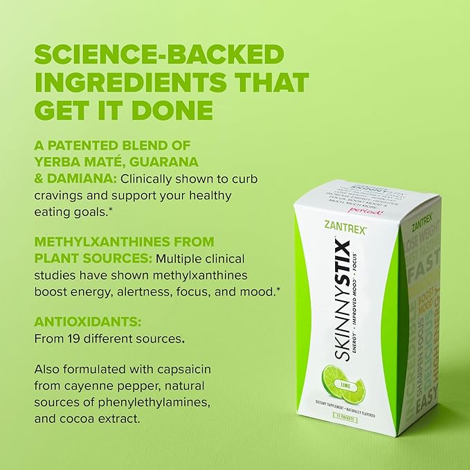 - Powerful Energy Drink Powder with Natural Forms of Caffeine: SkinnyStix give you a mood and energy boost from 110 mg of plant-based caffeine, including coffee bean extract.* This drink mix provides amazing results AND flavor – it tastes like a sweet lime explosion in your mouth. Plus, SkinnyStix are formulated with capsaicin from cayenne pepper, natural sources of phenylethylamines, cocoa extract, and healthy antioxidants from 19 different sources.