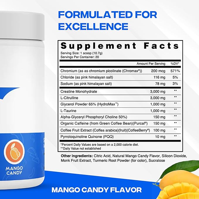 XEELA Pre Workout - Clean & Tested - Jitter Free, Safe, and Natural - Increase Thermogenic Energy, Focus, and Endurance w/Creatine, Organic Caffeine, and Plant Based Citrulline (Mango Candy)