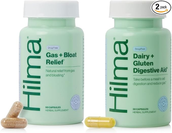 - Clean, premium ingredients: Hilma’s Digestive Enzymes include clean ingredients like turmeric, black pepper, dandelion root, and enzymes. Gas & Bloat includes a combination of peppermint leaf, fennel, lemon balm, caraway and anise. * Always 3rd-party lab tested.