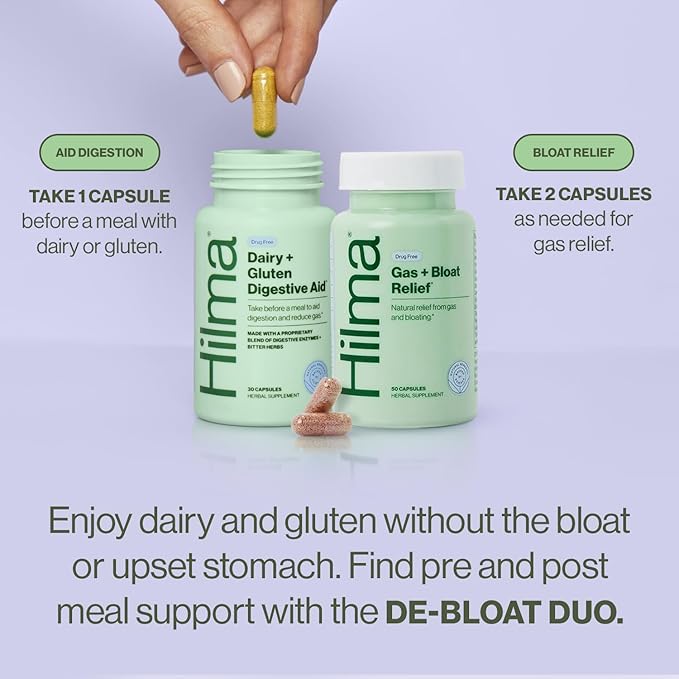 Hilma De-Bloat Bundle for Pre or Post Meal - Gas & Bloating Relief for Women (50 Vegan Capsules) with Lemon Balm & Peppermint Leaf - Digestive Enzymes for Women (30 Vegan Capsules) with Dandelion Root