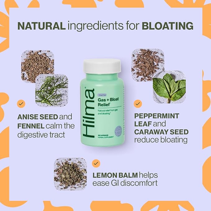 - Clean, premium ingredients: Hilma’s Digestive Enzymes include clean ingredients like turmeric, black pepper, dandelion root, and enzymes. Gas & Bloat includes a combination of peppermint leaf, fennel, lemon balm, caraway and anise. * Always 3rd-party lab tested.