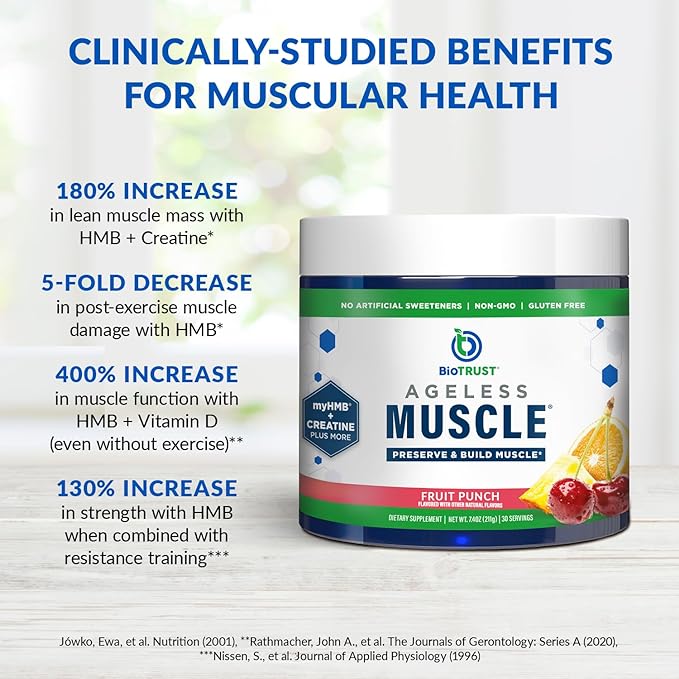 BioTrust Ageless Muscle Builder - Creatine HMB Powder with Vitamin D3 & Betaine - Build & Preserve Naturally Declining Muscle Mass & Strength - Fruit Punch, 30 Servings