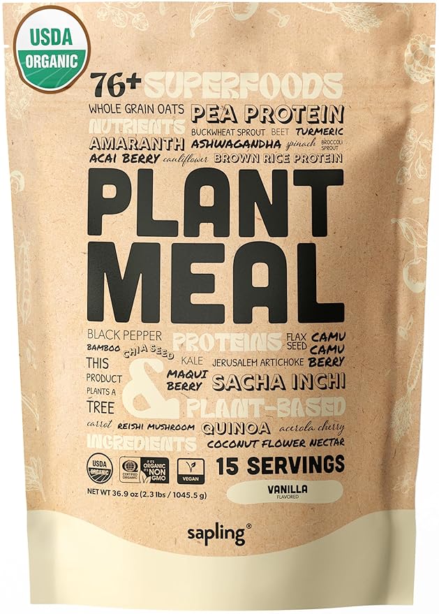 - More than just protein: Every serving of Plant Meal contains 76+ Organic Superfoods, Organic Plant-Based Proteins, Vitamins & Minerals, Organic Adaptogens, Organic Super Greens, & Plant-Based ingredients. Find Camu Camu, Pea Protein, Sacha Inchi, Chia & Flax, Reishi Mushroom, Ashwagandha, Coconut Milk, & more.