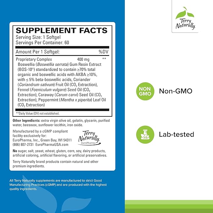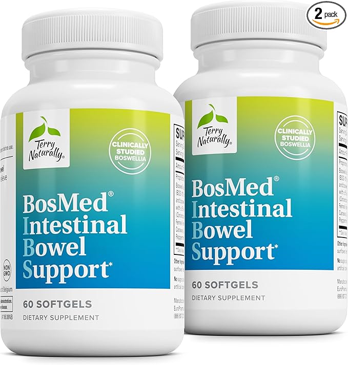 Terry Naturally BosMed Intestinal Bowel Support - Digestive & Intestinal Support Supplement - Gut Health Support with Coriander, Fennel, Carraway & Peppermint - 60 Softgels (Pack of 2)
