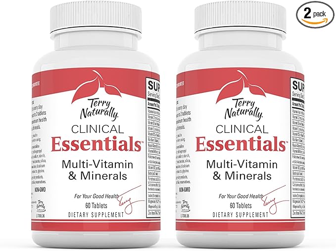 Terry Naturally Clinical Essentials - Supplement to Aid Bone, Cardiovascular & Immune Health - Supplement with Chelated Minerals - Supplement with B-Vitamins & Vitamin C - 60 Tablets (Pack of 2)