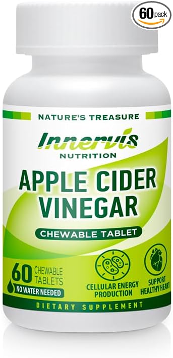 Apple Cider Vinegar 60 Chewable Tablets Healthy Heart Immune Support Energy Production Supplement