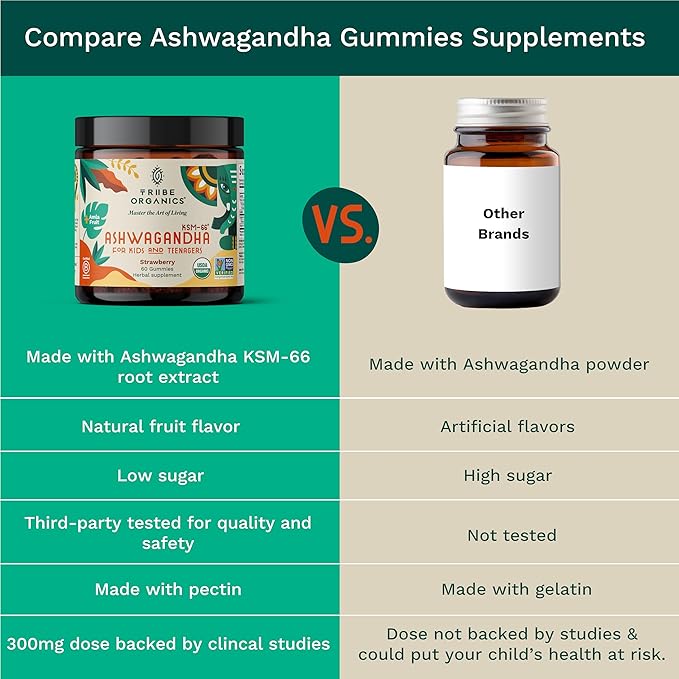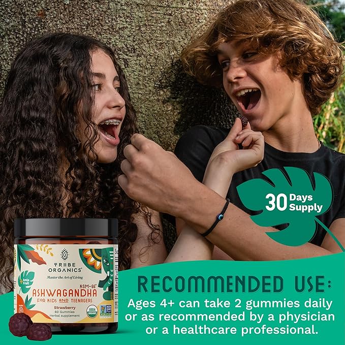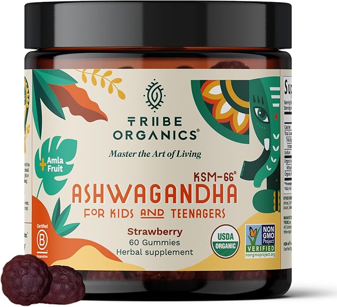 - Ready, Set, Calm: Academic demands, peer pressure, and emotional changes can create stress for young minds. Tribe Organics is here to support your child in bouncing back from challenging situations. Studies show our gummies, infused with Ashwagandha KSM-66 and Amla Fruit, may ease these challenges. Give your child the calmness they deserve with Tribe Organics Ashwagandha KSM-66 Gummies
