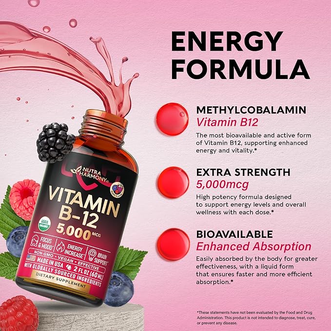 - Made with Care & Love – At NUTRAHARMONY, we desire to provide you with quality and outstanding service. If, for any reason, you are not happy with vitamin B12 liquid, just let us know! Drop a message to our support team to share your outstanding experience with B12 liquid vitamins! And remember, we care for your well-being!