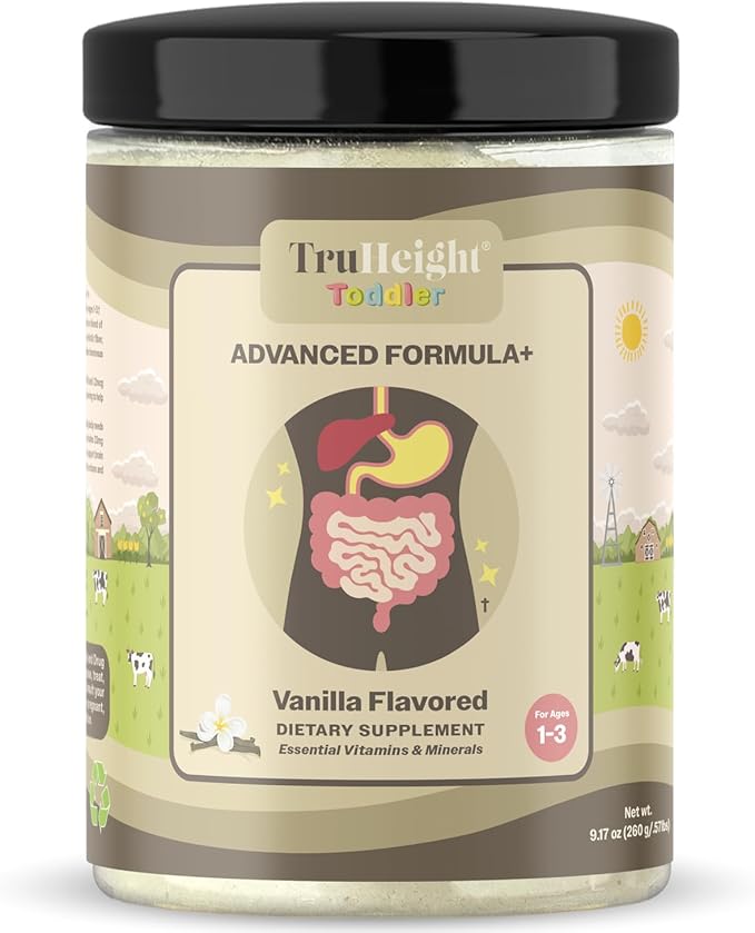 - Pediatric-Endorsed TruHeight Toddler Advanced Formula+: Upgrade your toddler's nutrition with TruHeight Toddler Advanced Formula+, designed for toddlers aged 1-3 years old. This next-generation formula supports healthy growth and development with plant-based protein, Grass-Fed Whole Milk Powder, and Olive Oil. Packed with 16 essential vitamins, including Vitamin C and Iron, it provides the foundational nutrients toddlers need to thrive.*